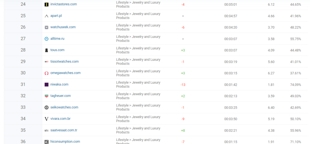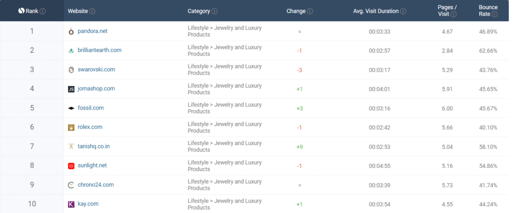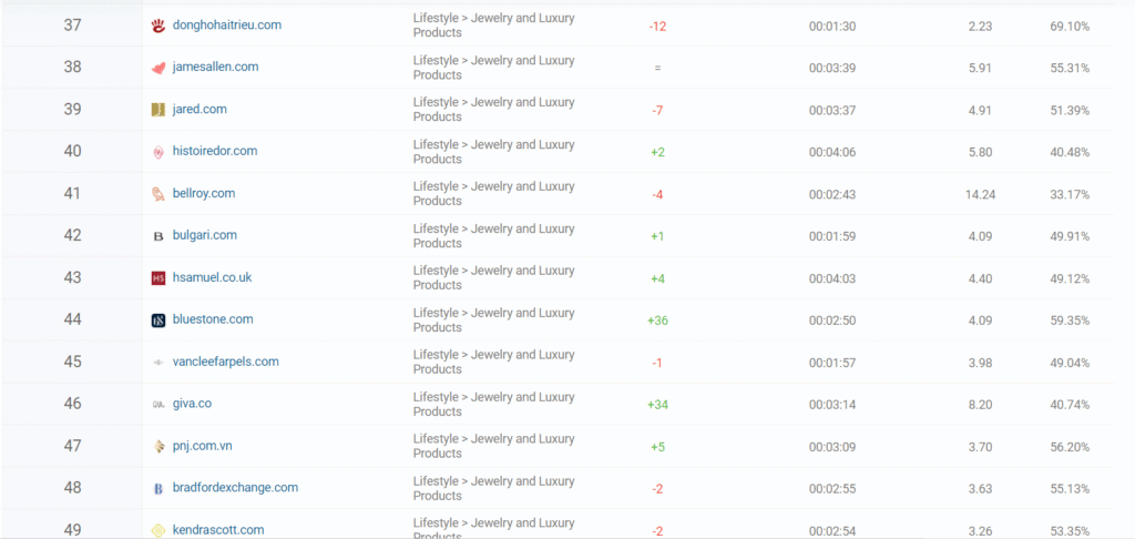 Also, based on Nov.2022 online website visitors (Traffic) Ranking, here are the TOP 50 Luxury Jewelry Companies for your reference.