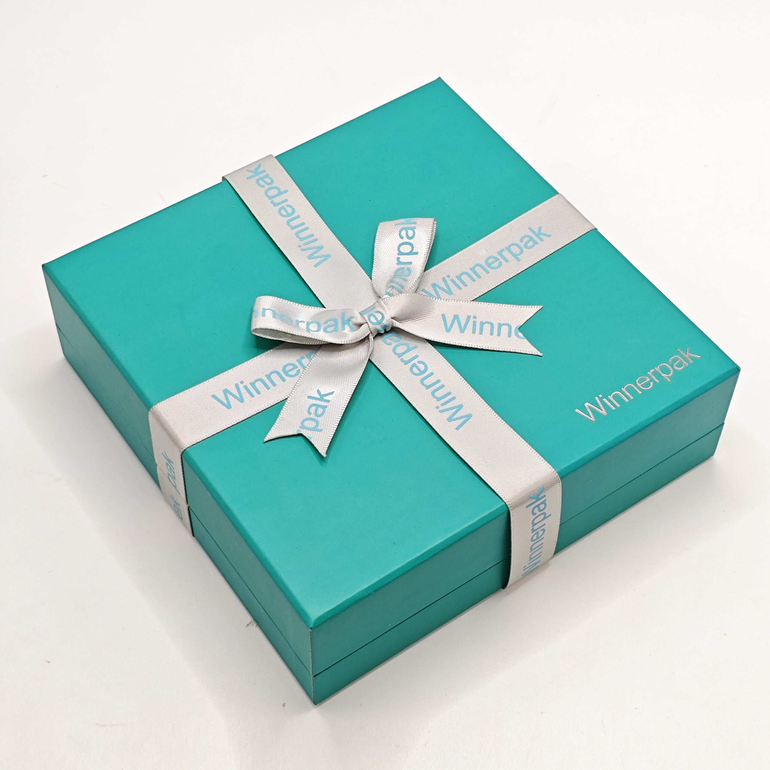 Printing/Finishing: CMYK Pantone-matched printing, silk-touch PP lamination, or silk-touch specialty paper, with logo on ribbon/box.
