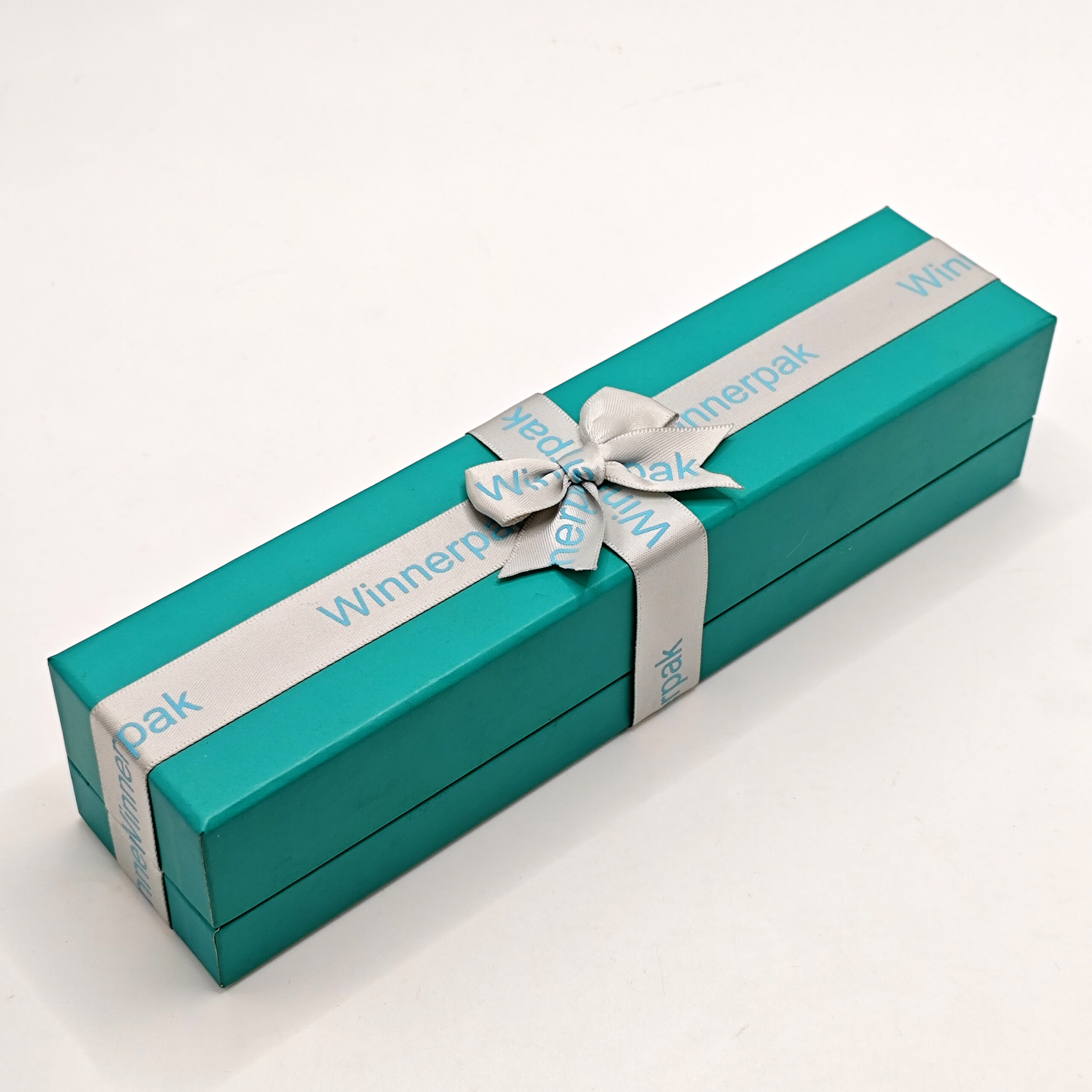 Winnerpak’s DRLP, a premium square rigid jewelry paper box with a characteristic cross-wrapped butterfly ribbon and magnetic closing, enhances both display and safety. The DRLP, made of 900-1000 GSM rigid cardboard with Nature Green printing and silk-touch PP lamination, offers a refined and tactile feel while promoting sustainability. Select full-color CMYK printed coated paper or upgrade to our silk-touch specialty fancy materials.