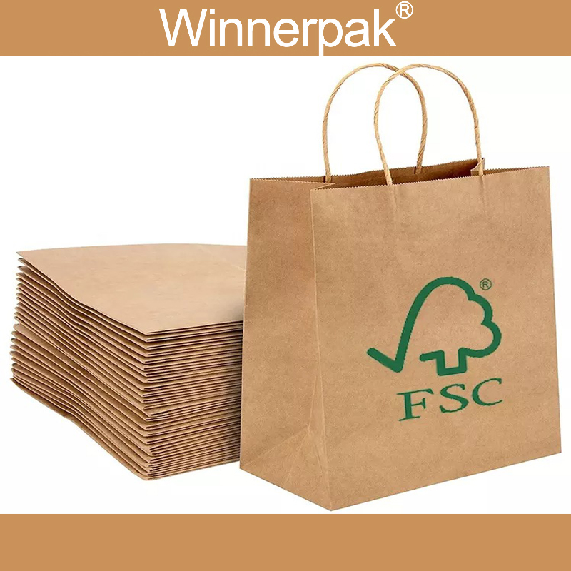 Customized Kraft Paper Bag: In today’s industry, personalization is essential. Winnerpak provides you with a wide range of customization choices for your kraft paper bags. With everything from full-color printing to custom dimension requirements, we make sure your brand is noticeable. Our ability to produce goods abroad enables us to provide custom solutions that are made to meet your unique needs.