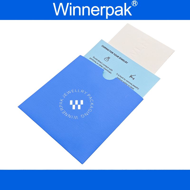 Discover the Envelope Set Package 4-in-1, Winnerpak’s finest jewelry envelope kit. The 10 × 10 cm envelope and 8 × 8 cm manual card are made of 250 gsm embossed paper, with optional silk-touch lamination for a beautiful finish. A 6 × 6 cm tiny envelope contains a microfibre silver cleaning cloth (about 5 × 5 cm) to keep jewelry clean and lustrous. Choose custom colors, CMYK printing, and logo embossing for all components. MOQ is 2000 sets. Suitable for retail gifting, repair, and warranty operations. Wholesale and custom printing are available.