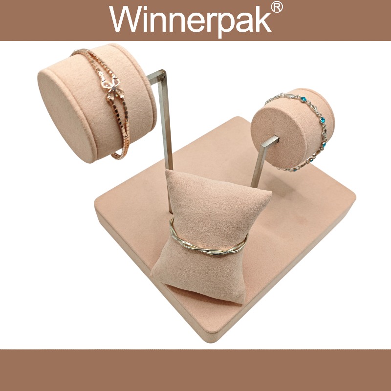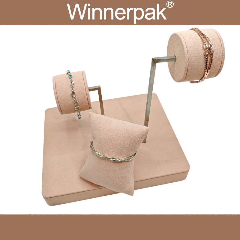 WinnerPak’s BHS3-1 luxury bangle display set, which combines exquisite craftsmanship and refined style, will elevate your jewelry presentation. This unique 3-in-1 jewelry display creates a sophisticated display for exquisite bracelets, bangles, and high-end watches by combining luxurious pink microfiber with accents of electroplated stainless steel. A component of our all-inclusive jewelry packaging and display ecosystem, made for premium companies that want nothing less than the best.