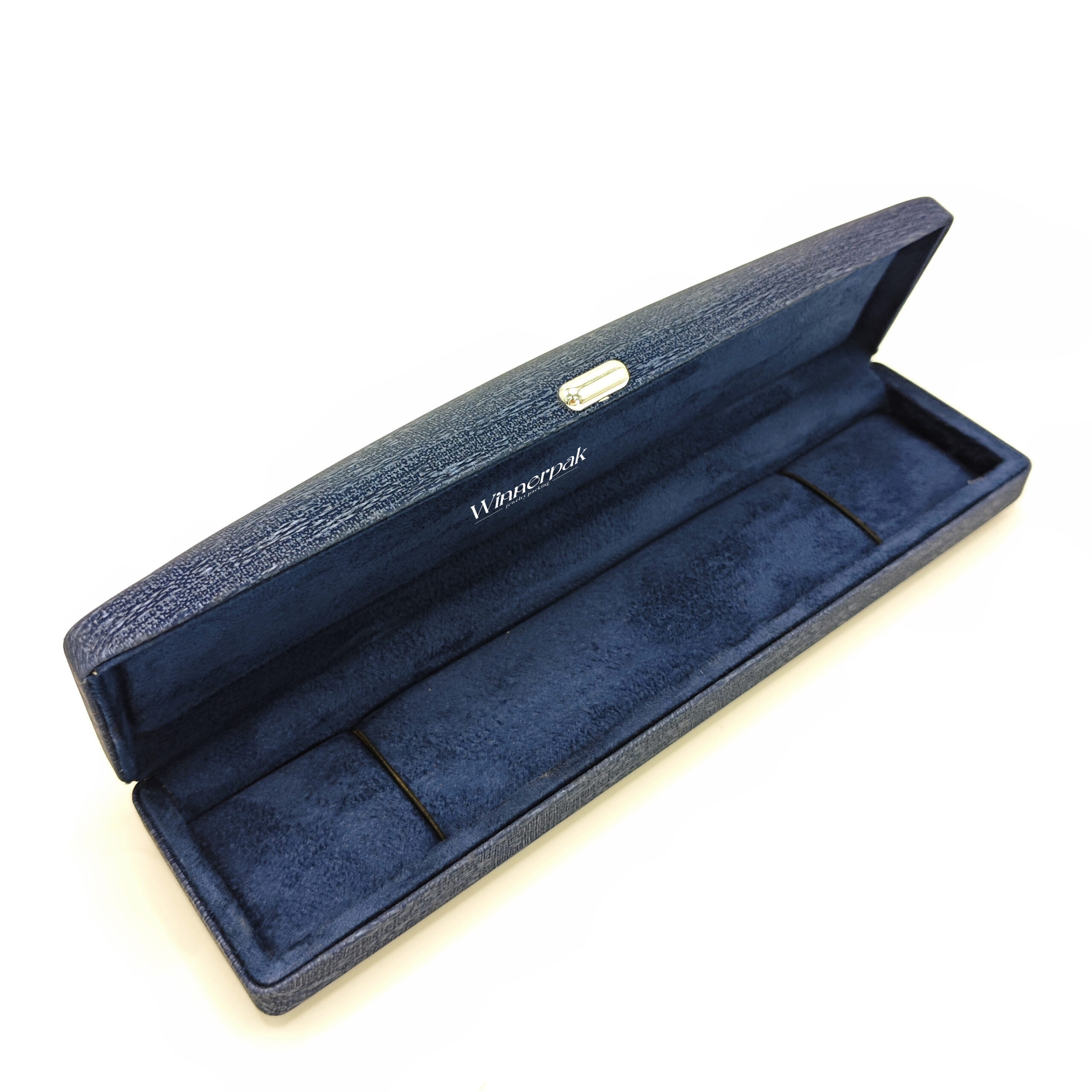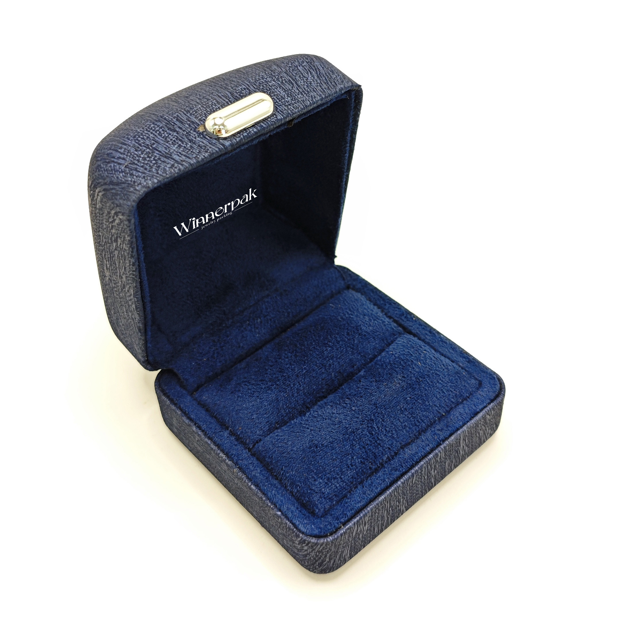 Winnerpak is your go-to manufacturer of Chinese jewelry boxes for the RL08 Collection. With a premium silver metal accent and a sturdy navy blue cross-grain leatherette exterior, this series epitomizes reasonably priced elegance.