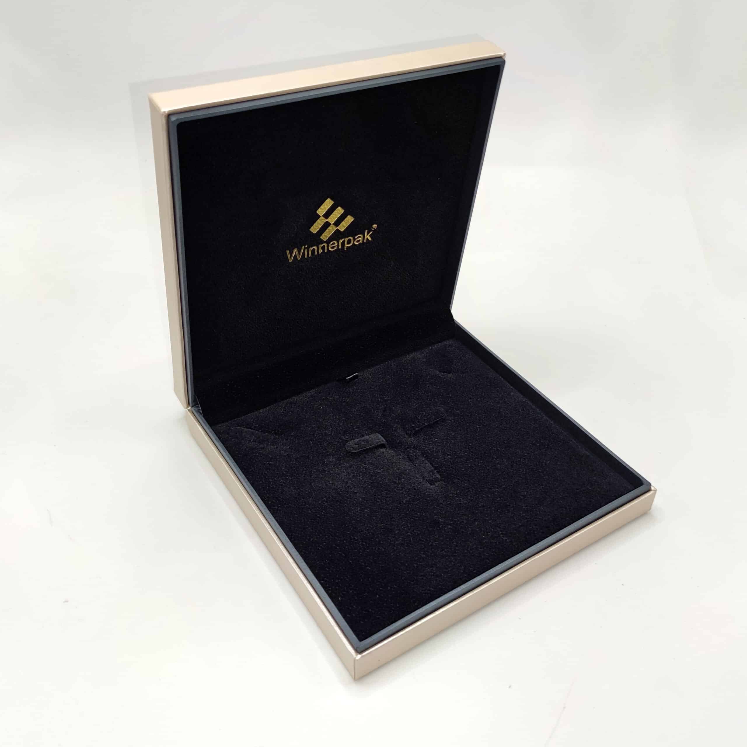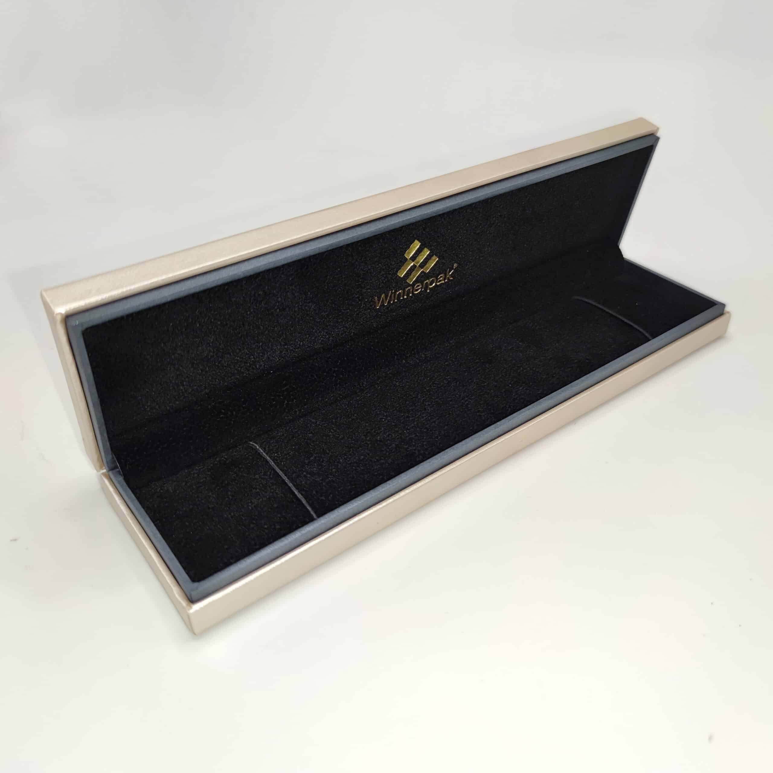 Straight Corner Leatherette Boxes with Velvet Layer in the Middle Like Hamburger.