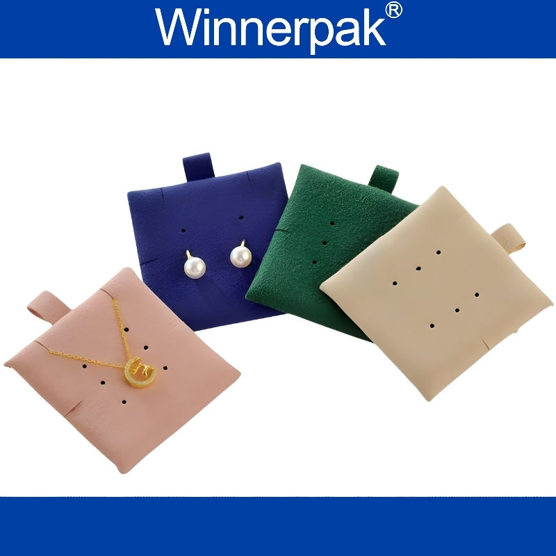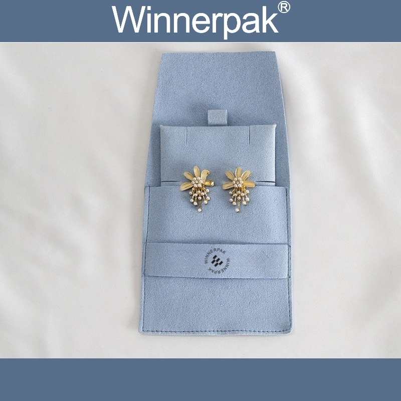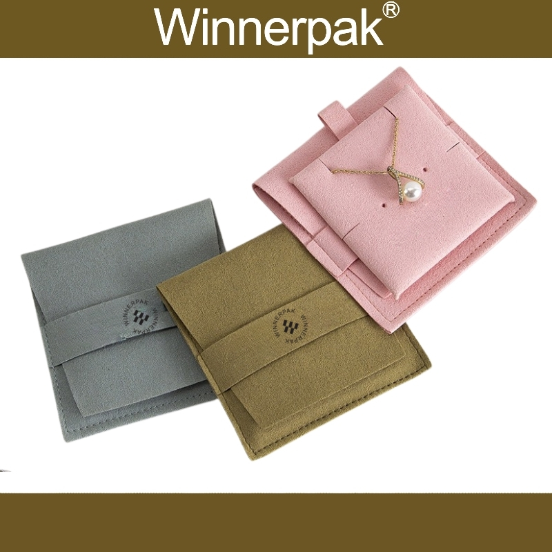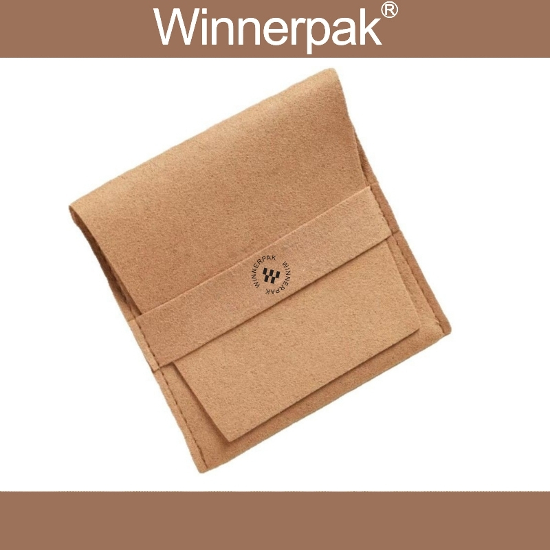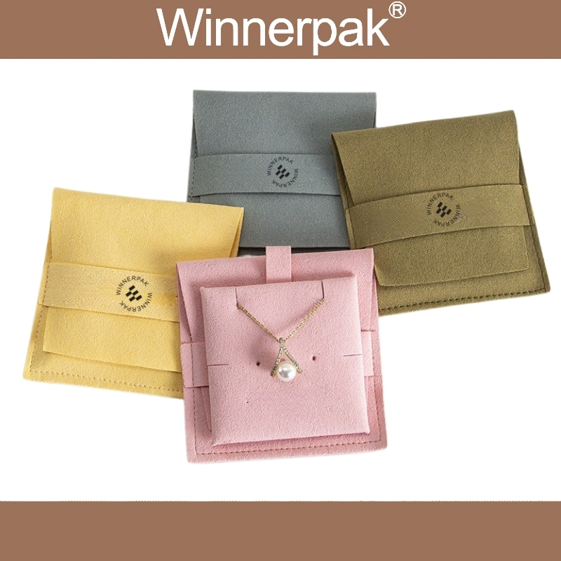 Winnerpak’s SQ-01, a personalized microfiber suede velvet jewelry pouch made for display, branding, and protection, offers a high-end, fabric-based substitute for boxes. For a safe, snap-free closing that is both stylish and useful, its distinctive inverted trapezoidal front flap slides through a center velvet strap.